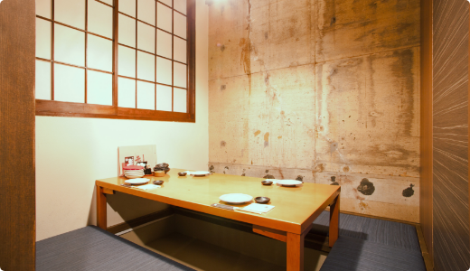 人気の完全個室のお部屋となっております。落ち着いた少人数のご宴会や接待に最適です。
