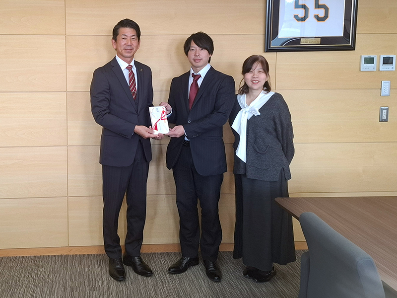 当社は10月20日、宿毛市へ寄付金100,000円を贈呈し、中平富宏市長を表敬訪問しました。
